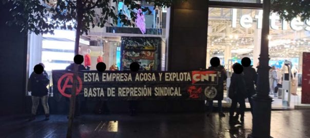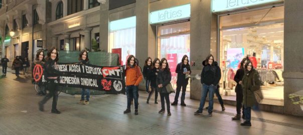 El pasado miércoles 29 de enero, la CNT-AIT madrileña organizó un acto de apoyo a la compañera de Badalona que sigue sufriendo acoso por parte de esta empresa del grupo Inditex.